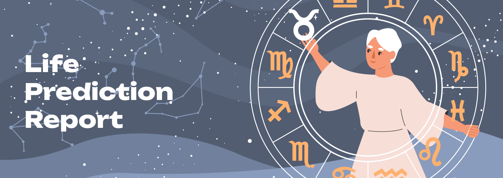 Our life prediction report covers major life aspects (education, career, marriage, health, finances, family, spirituality) along with timing of important events and recommended remedies.